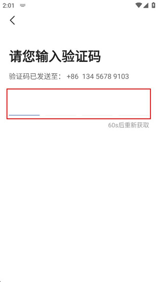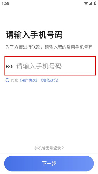 2、进入手机号输入界面,在对应输入框填写常用的手机号码信息。