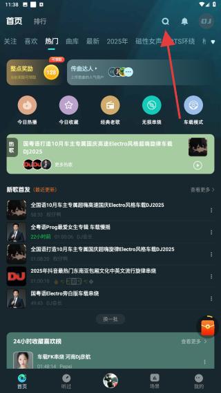 1、打开dj串烧集APP,在首页内点击右上搜索的图标。