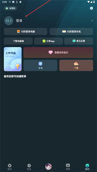 2、进入我的页面内,点击上方登录的区域位置。