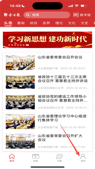 1、进入联合日报后,点击底部的我的选项,可进入个人中心页面。