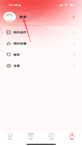 2、在个人中心页面,点击登录区域,可进入手机快捷登录页面。