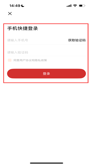 3、在登录页面,填写信息并勾选协议后,点击登录按钮即可完成账号登录。