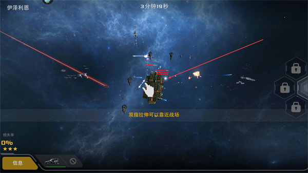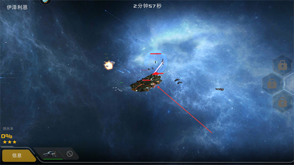2、操控舰队迎击敌方,双击指针让舰队近战,与敌方舰船交火推进战局。