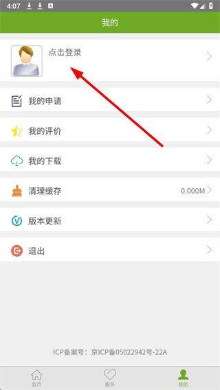 2、进入我的页面后,找到点击登录选项并点击,跳转至登录页面。