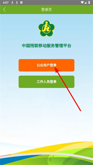 3、在登录页选择公众用户登录按钮点击,进入公众用户的登录界面。