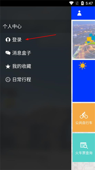 2、在展开的个人中心界面里,找到并点击登录选项,进入登录页面。