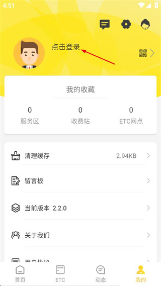 3、在个人中心页面找到点击登录选项,点击该选项进入账号登录的界面。