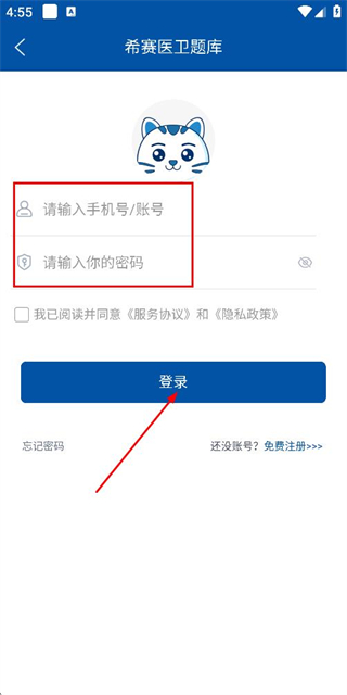 3、在登录页面填写手机号和密码,勾选协议后,点击登录完成账号登录操作