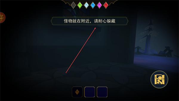 4、看到提示怪物就在附近,请耐心躲藏,保持隐蔽,等待危险解除。