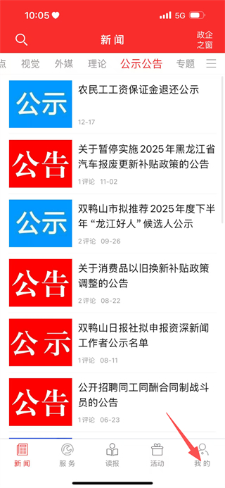 1、在新闻页面,点击底部的服务的选项,进入服务页面。