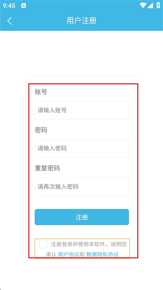 4、在注册页面,填写信息并勾选协议后,点击注册按钮即可完成账号注册。