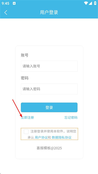 3、在登录页面,点击立即注册选项,可进入用户注册页面。