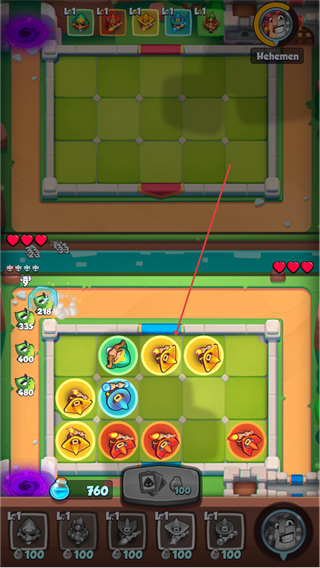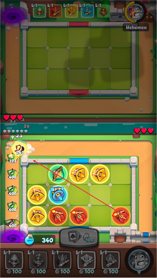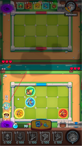 3、继续放置角色,形成角色阵容,攻击敌方,积累对战优势。