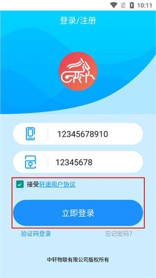 4、勾选接受轩途用户协议,点击立即登录按钮,完成应用的登录操作。