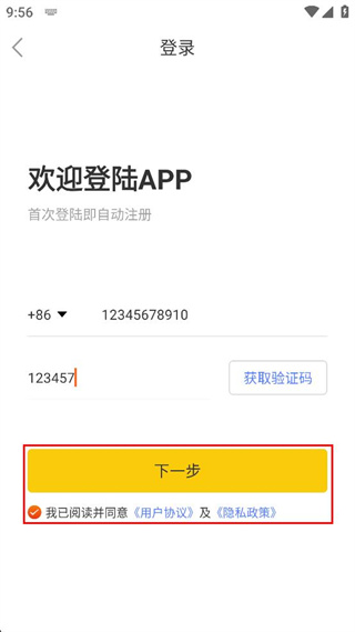 4、勾选我已阅读并同意相关条款,点击下一步按钮,完成登录流程。