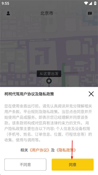 1、打开应用,出现用户协议及隐私政策提示,点击同意按钮,进入应用主界面。