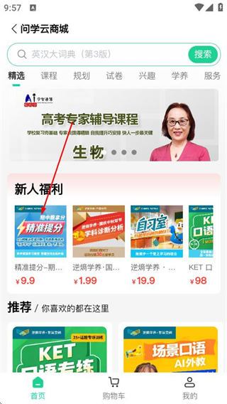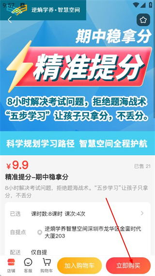 2、在商城页面,点击目标课程如精准提分一期,可进入该课程的详情页面。