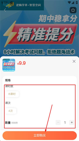 3、在课程详情页,点击立即购买按钮,可进入规格选择页面。