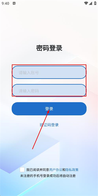 3、在登录页面填写手机号和密码,勾选协议后,点击登录完成账号登录操作。
