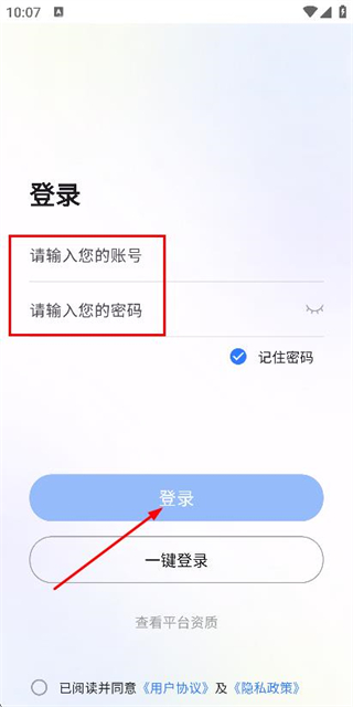 3、在登录页面填写手机号和密码,勾选协议后,点击登录完成账号登录操作。