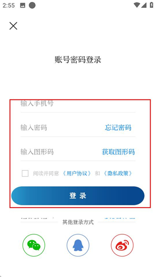 3、在登录页面,填写信息并勾选协议后,点击登录按钮即可完成账号登录。