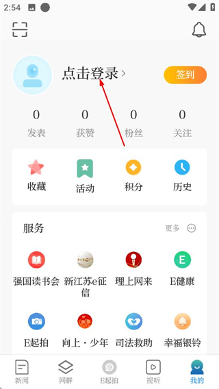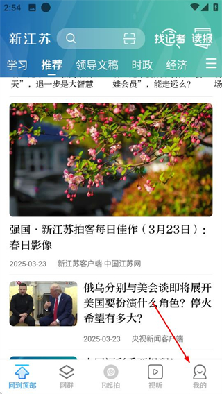 1、进入新江苏后,点击底部的我的选项,可进入个人中心页面。