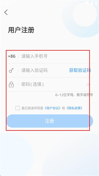 4、在注册页面,填写信息并勾选协议后,点击注册按钮即可完成账号注册。