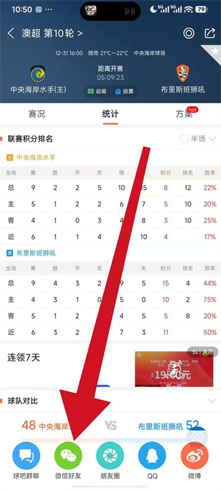 4、在分享选项中选择微信好友,即可跳转至微信界面分享该赛事信息。