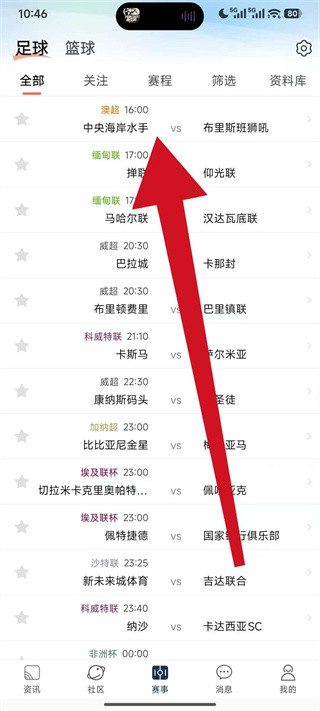 1、打开球探体育,点击底部导航栏的赛事选项,进入赛事列表页面。