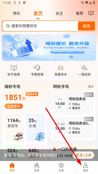 1、在易众拍卖行app首页,找到底部我的选项并点击,可进入对应页面。