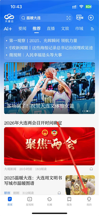 1、在大连云app页面,找到底部导航栏我的选项并点击,进入个人页面。