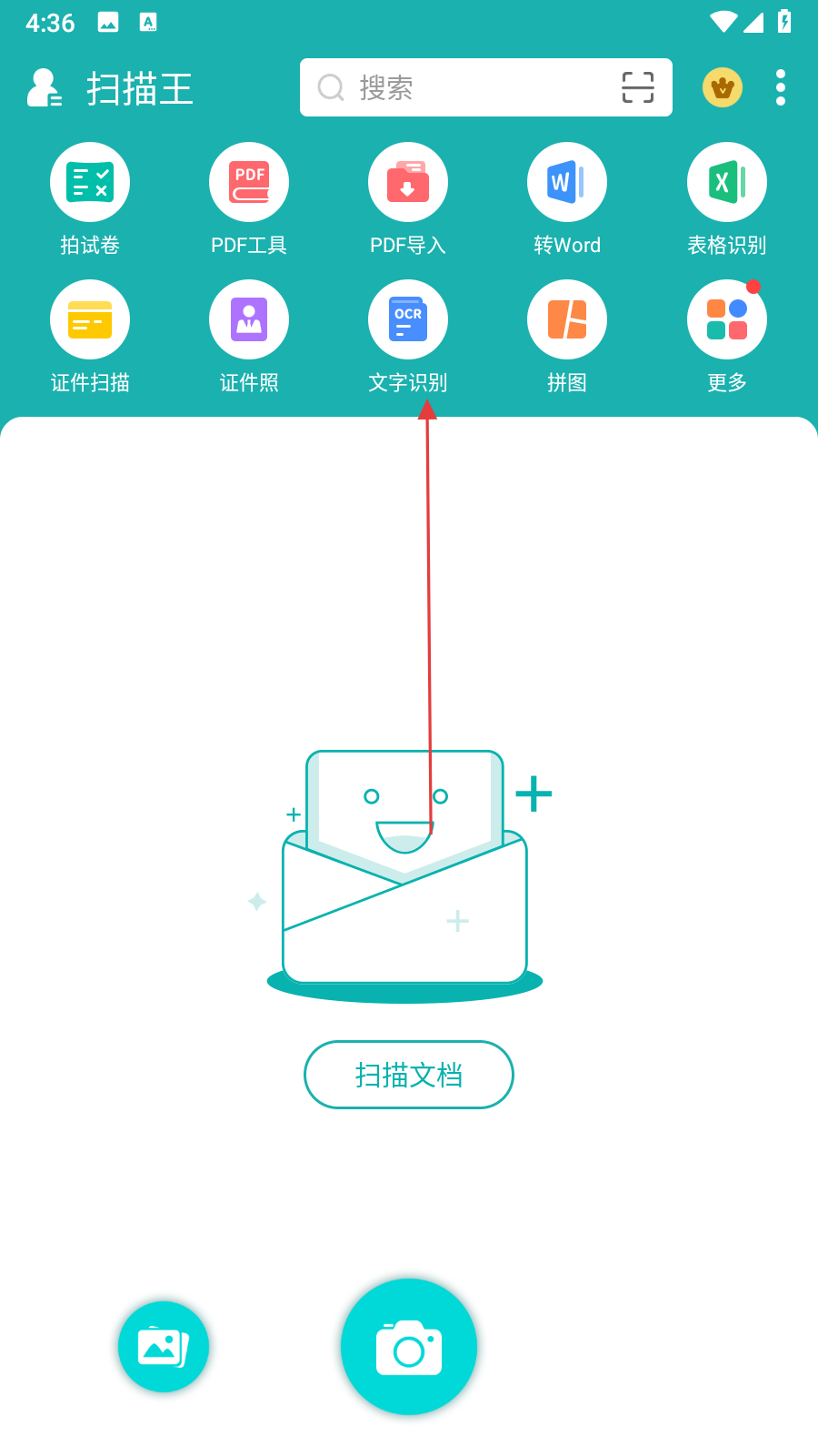 1、打开扫描王应用,在主界面找到文字识别选项并点击。