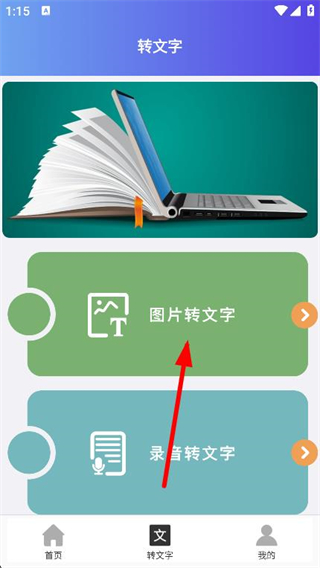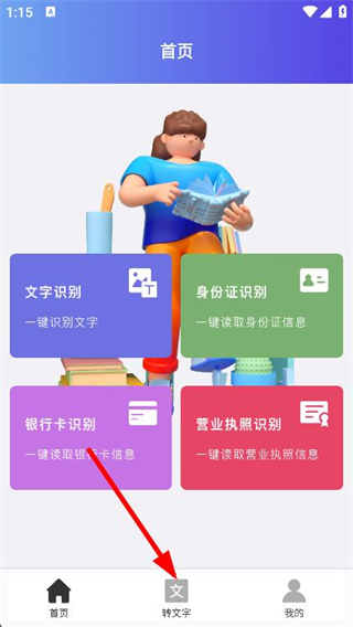 1、打开拍照翻译精灵,点击底部的转文字选项。