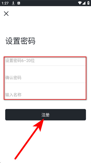 4、进入设置密码页面,填写注册信息,信息填写完成后点击注册,完成账号注册。