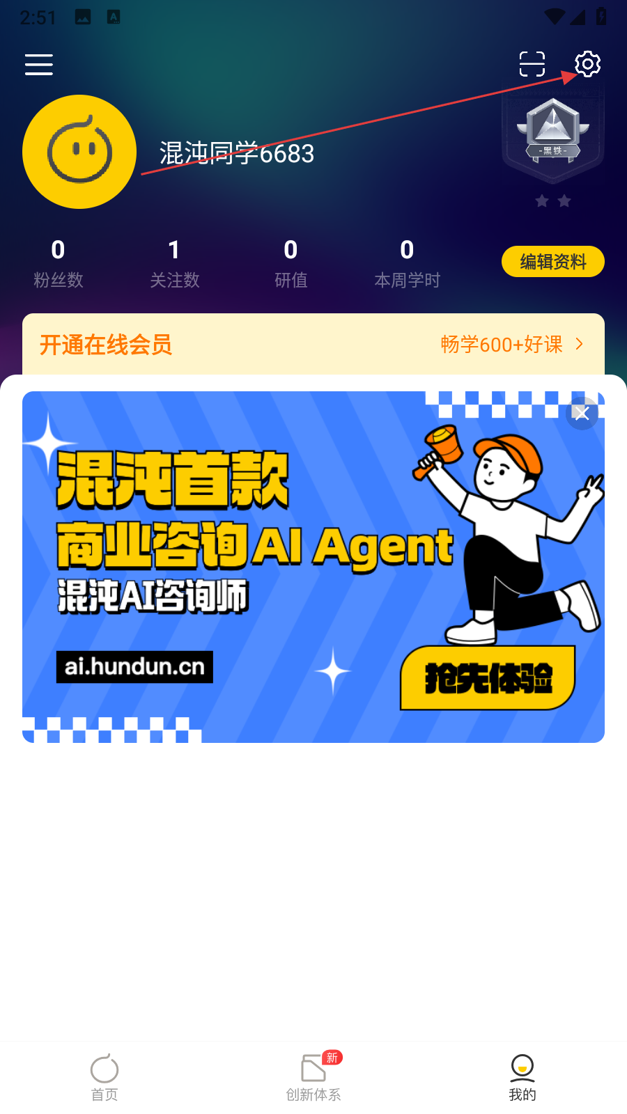2、在个人页面中,点击右上角的设置图标,进入设置界面。