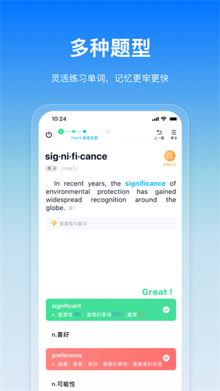 鲸鱼爱语境是专注英语单词学习与课时练习的一体化学习平台,整合全维度听说读写资源、教材同步训练、多题型刷题与真题测验,依托科学记忆方法强化词汇掌握,适配不同学习阶段需求,让英语学习从词汇积累到综合应用形成闭环,高效巩固课时知识、提升英语综合能力。