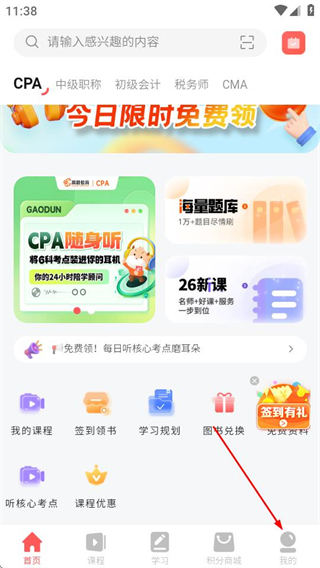 1、进入高顿会计后,点击底部的我的选项,可进入个人中心页面。
