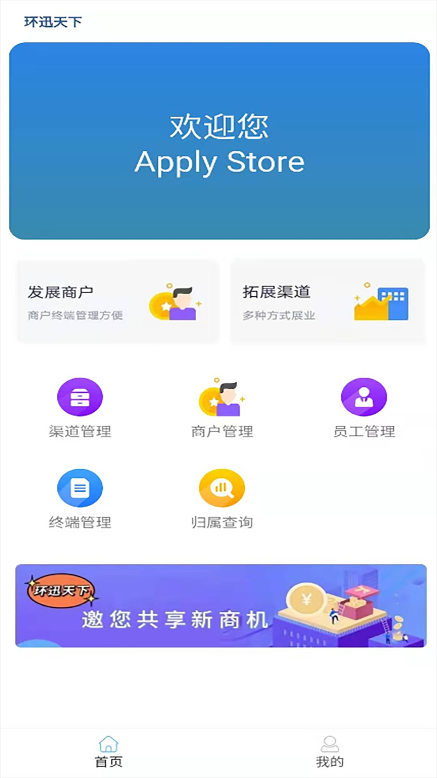 环迅天下APP是为用户提供便捷办公的软件,里面有非常多的功能能够帮助用户进行商户管理,可以进行渠道管理,终端管理,员工管理,里面的功能和种类非常的齐全,大大提高用户们的工作效率。