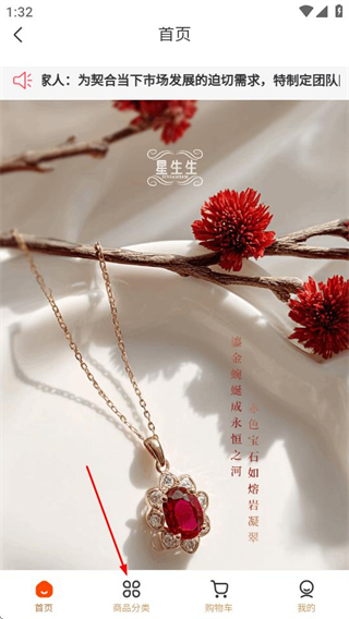 1、进入首页后,点击底部的商品分类选项,可进入商品分类页面。