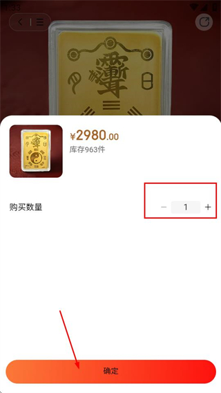 4、在数量页面,确认购买数量后点击确定按钮,即可完成购买流程。