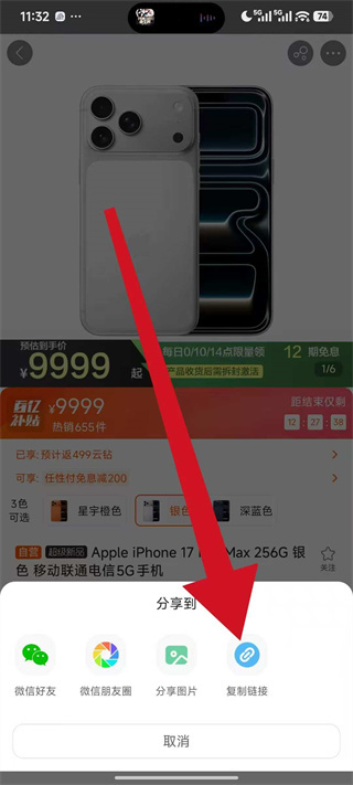 5、在分享选项中选择想要的分享方式,即可完成商品链接的分享。