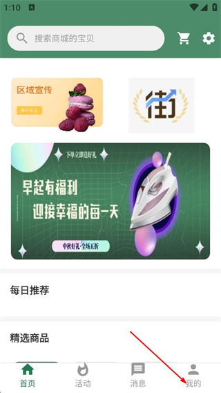 1、在商城首页,点击底部的我的选项,进入个人页面。