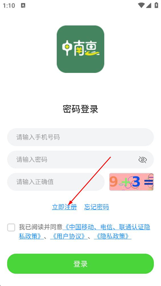 2、在密码登录页面,点击立即注册的选项,进入注册页面。