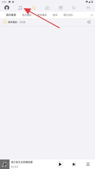 1、启动海贝音乐APP,在首页的导航栏中点击音符的图标。