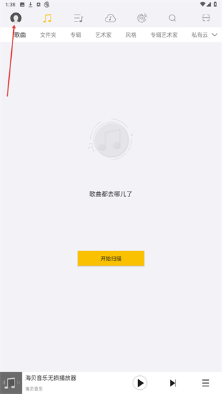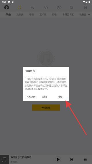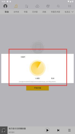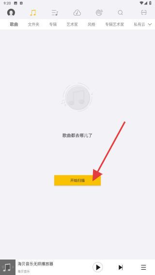 2、进入音乐的姐妹内,点击黄色字眼的开始扫描。
