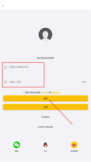 1、打开海贝音乐应用,进入时点击左上方人像的图标。