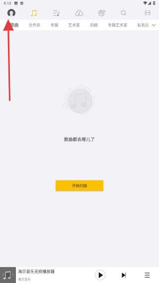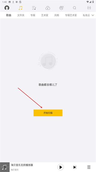 2、进入音乐的页面内,点击画面中间开始扫描的按钮。