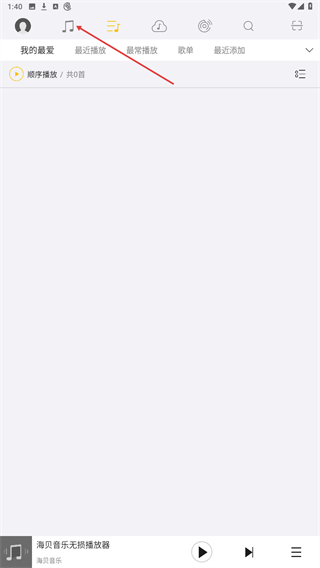 1、启动海贝音乐App,进入时点击上方音乐的图标。