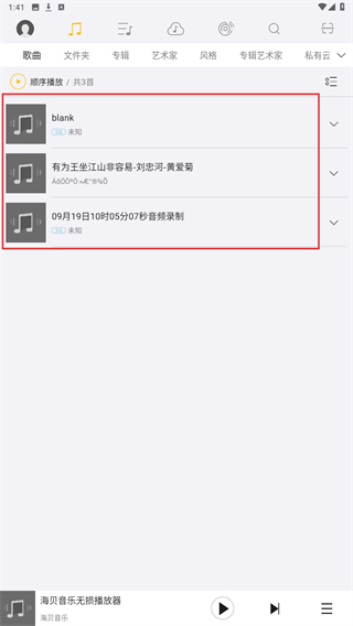 支持全格式无损音乐界面,包括wav,ape,flac,alac,aiff,m4a以及aac,wma,mp3,ogg,cue等