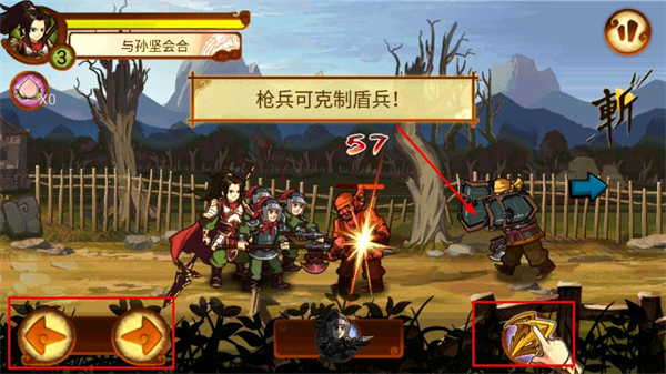 3、战斗过程中,通过左侧按键控制角色移动,借助右侧斩类技能进行输出,留意兵种克制规则,释放技能提升战斗效率。